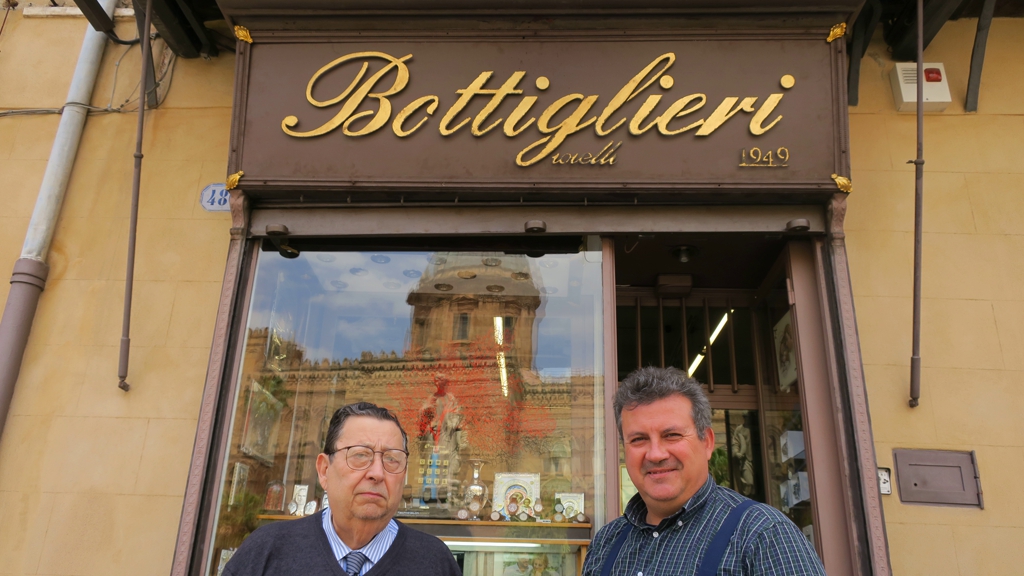 The cathedral is reflected in the two glittering display cases offering the collections created by Domenico, a representative of the third generation. It bears the name of the grandfather who also repaired tower clocks in the ’40s. His son Alberto expanded the business with jewelry and today he assists his son Domenico who offers a precious collection, the result of serious artisanal work. Rings, brooches, necklaces, bracelets, just to name a few of the jewels suitable for any occasion. The passion for history and tradition led to the collection inspired by Frederick II, also appreciated by the Queen of Holland.